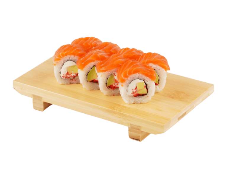 Состав: рис, нори, авокадо, сыр сливочный, лосось, икра масаго...