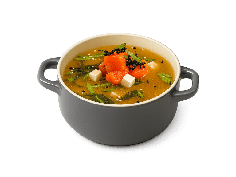 Состав: паста Мисо, вода, водоросли Вакаме, копчёный лосось, сыр тофу, лук ...